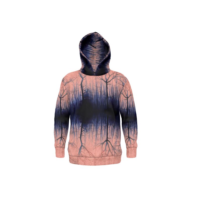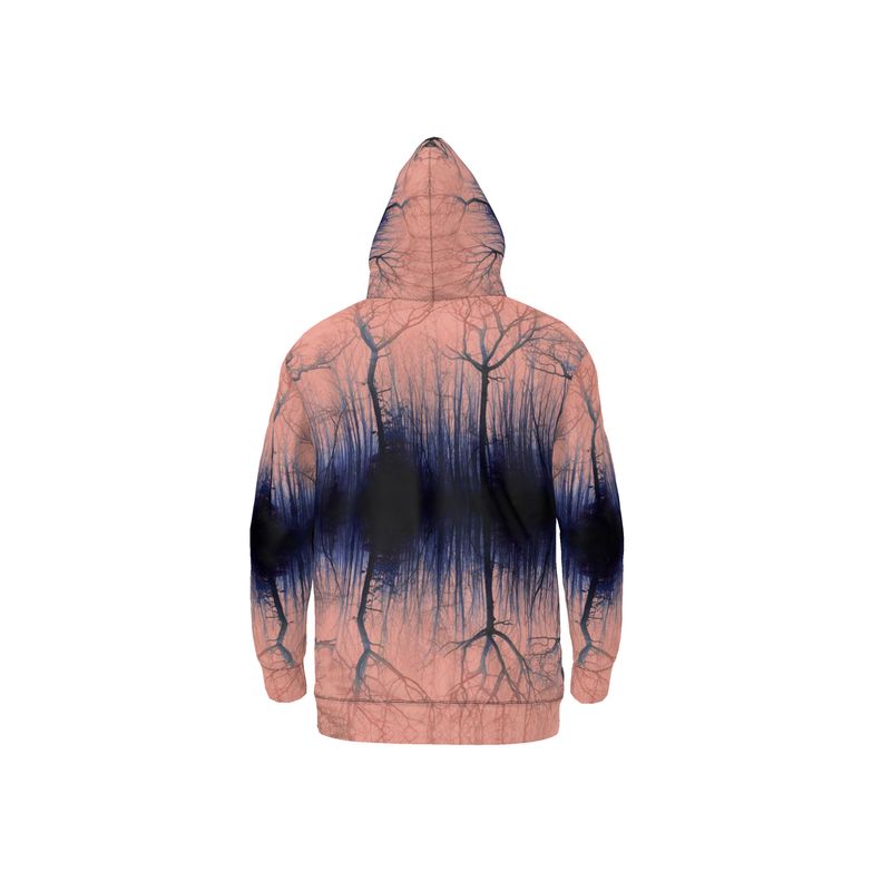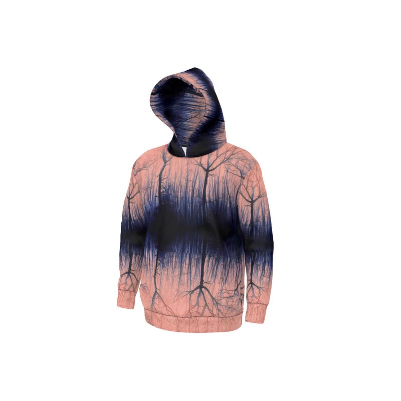 Felpa con cappuccio Treflections color corallo tramonto. Avvicina l'esterno a te con questo fantastico design ispirato ai boschi. Indossa l'arte. Indossa la Natura. Sentirsi bene.