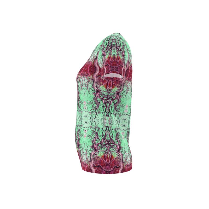 Green and magenta curly hazel designer fitted t shirt