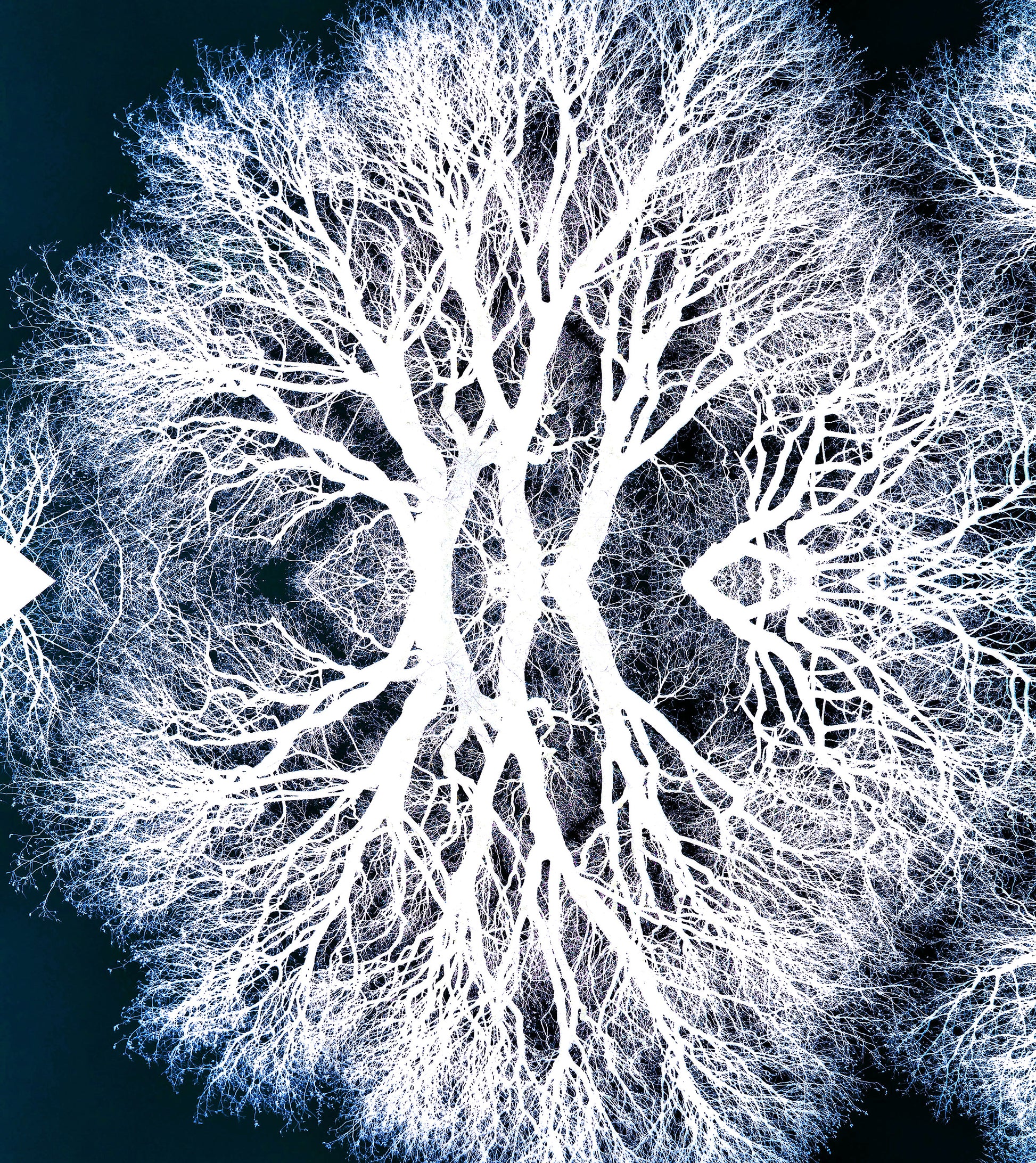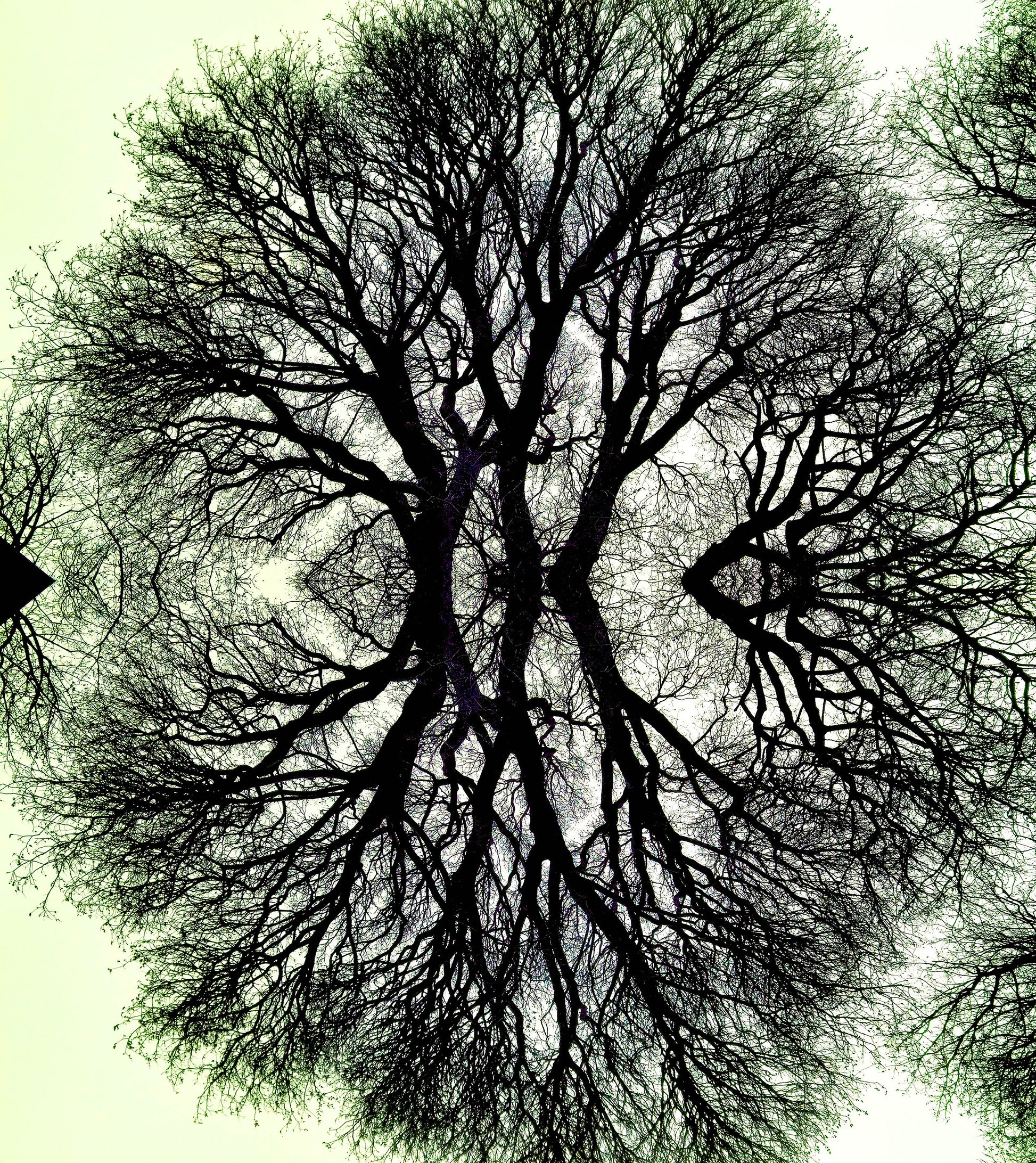 A perfect crown, as we know from recent events, can create a lot of fuss. This beauty certainly got my attention in Clowes Wood, Nr Whitstable, Kent. UK.  I digitally cut and collage parts of the image to produce these trippy tree designs. There are so many variations from each tree which completely fascinates me. When I alter the colours I always use the natural colour as a base and tweak from there which is why there are certain hues that might only be found at particular times of the year.